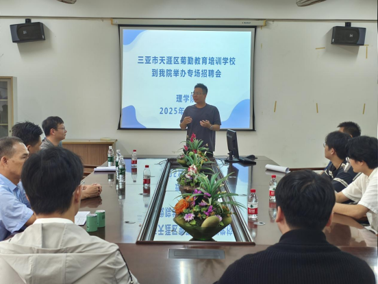 为切实做好2025届毕业生就业工作,拓宽就业渠道,精准搭建企业与学生双向选择的互动平台,助推毕业生充分、高质量就业,4月25日上午,三亚市菊勤教育培训学校校长冷枫、人事主管罗锴在9403会议室开展“2025届毕业生校招宣讲会”,我院专业辅导员和2025届在校毕业生参加,学院党委书记林佩、副书记黄宇志出席。